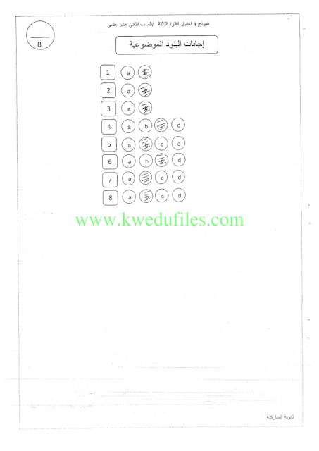 12. إجابة أسئلة اختبار القصير من منصة البلاطي