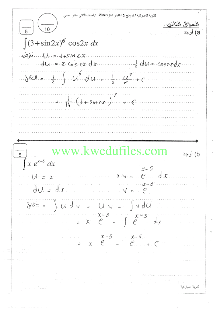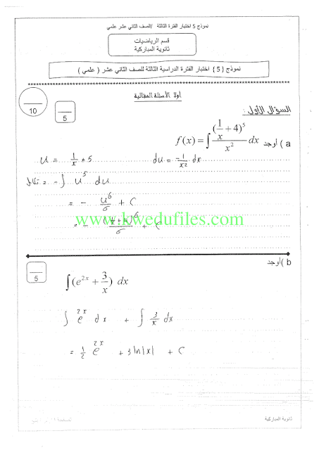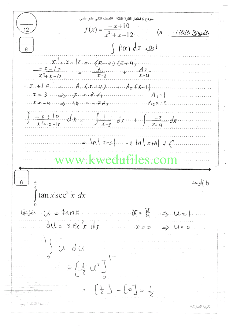 أحدث ملفات الصف الثاني عشر العلمي, رياضيات, الفصل الثاني