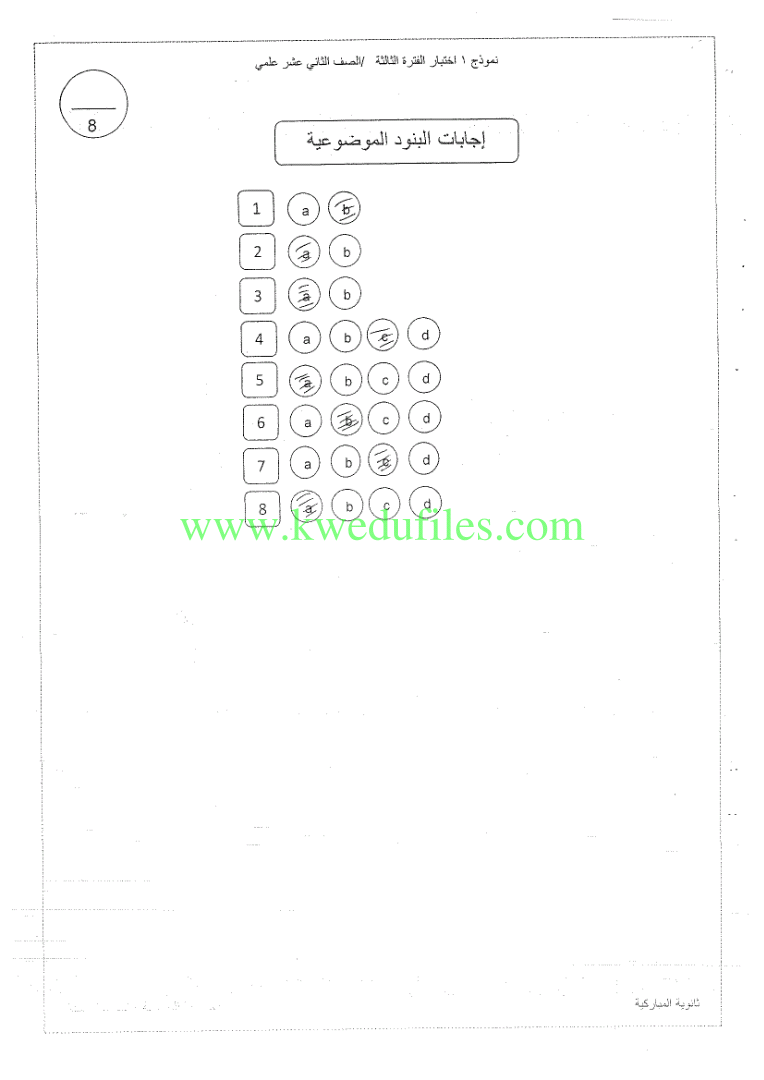7. نماذج اختبارات سابقة مع إجاباتها النموذجية
