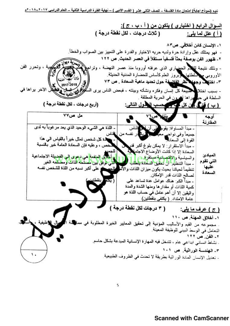 تم إيجاد الملف: نموذج اجابة الفلسفة لعام 2018