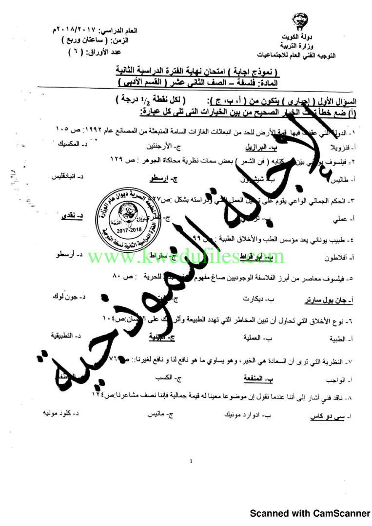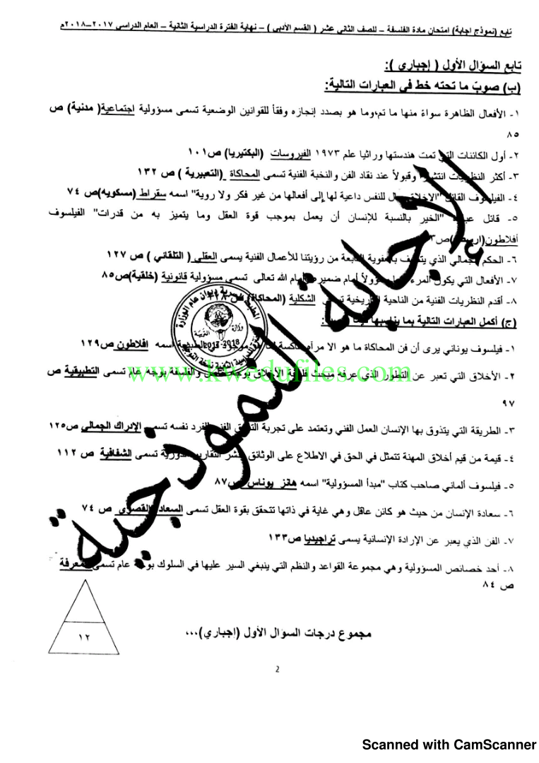 نموذج اجابة الفلسفة لعام 2018 | ||