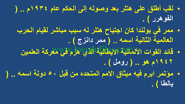 المراجعة النهائية في مادةالتاريخ وشرح وحل بنود الامتحان واهم الاسئلة المتوقعة للاختبار