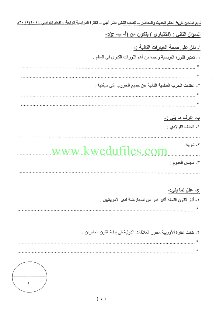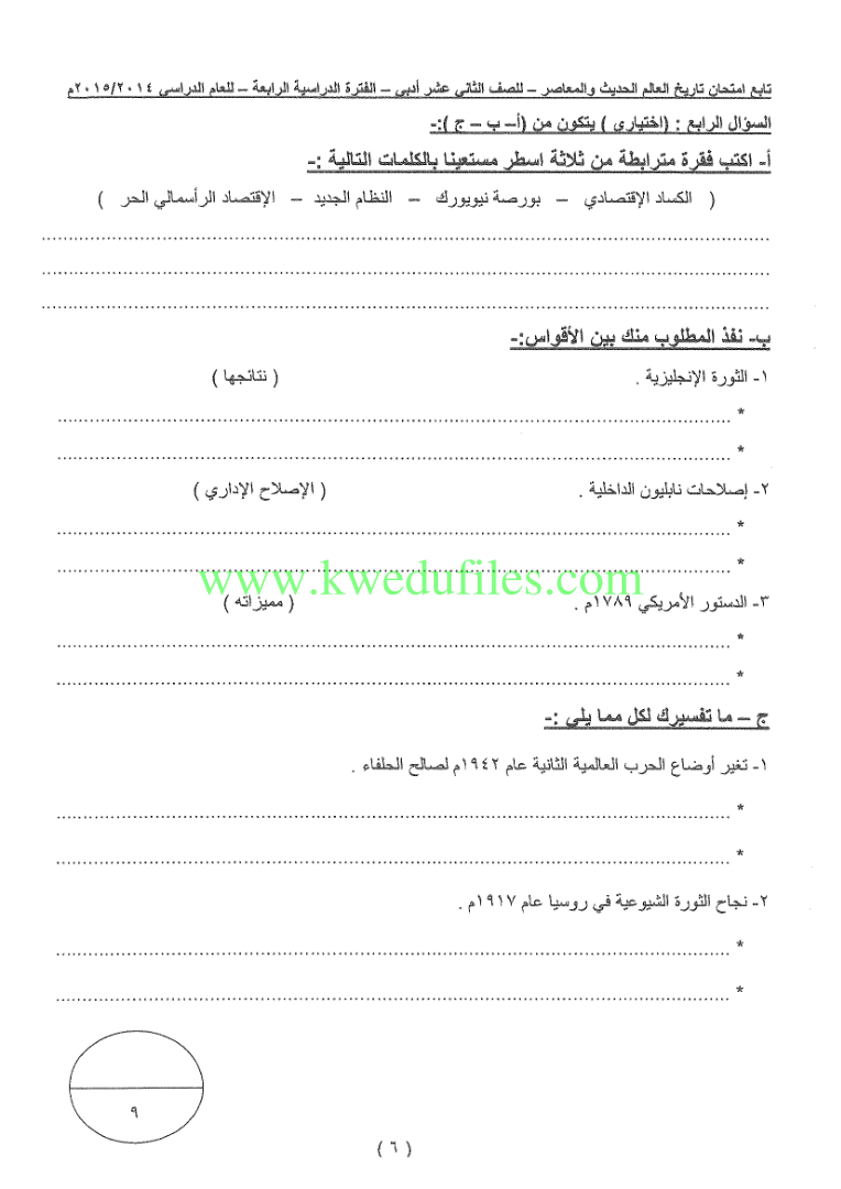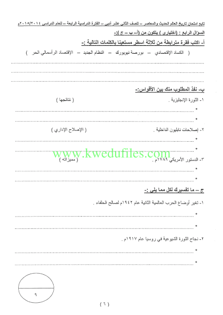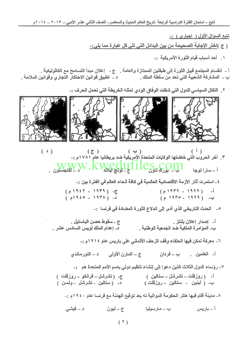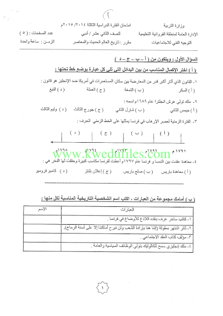 أنت هنا: موقع المناهجالمناهج الكويتية الصف الثاني عشر الأدبي تاريخ الفصل الثاني الامتحان النهائي