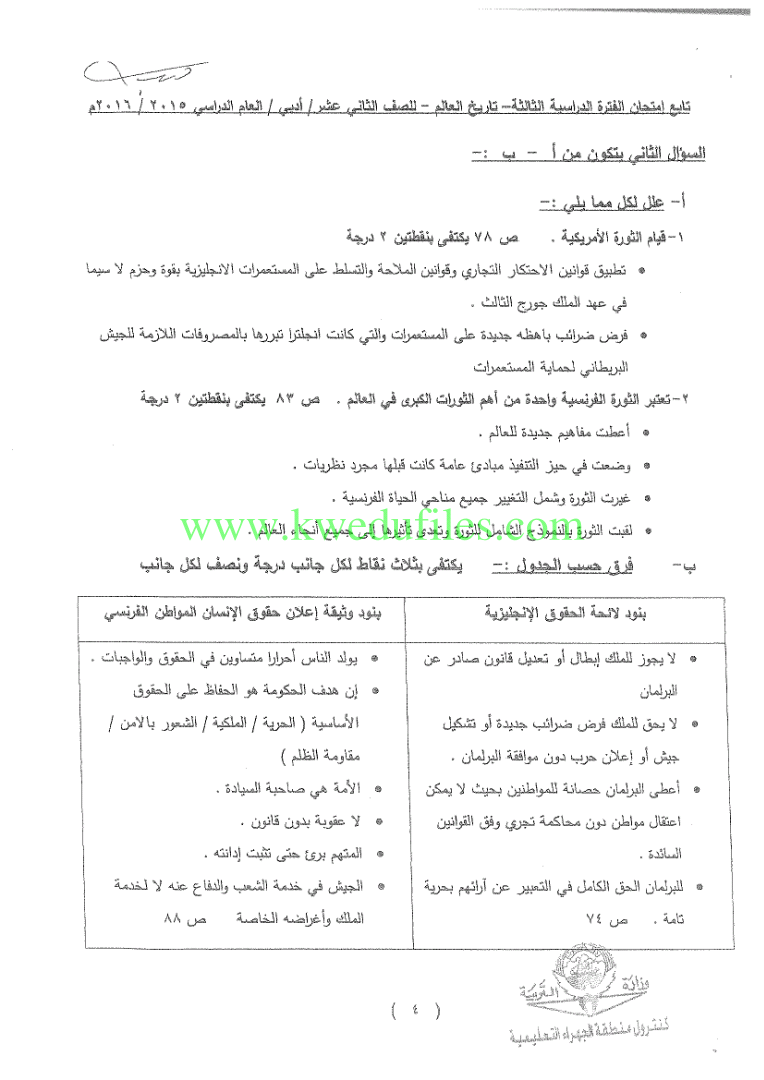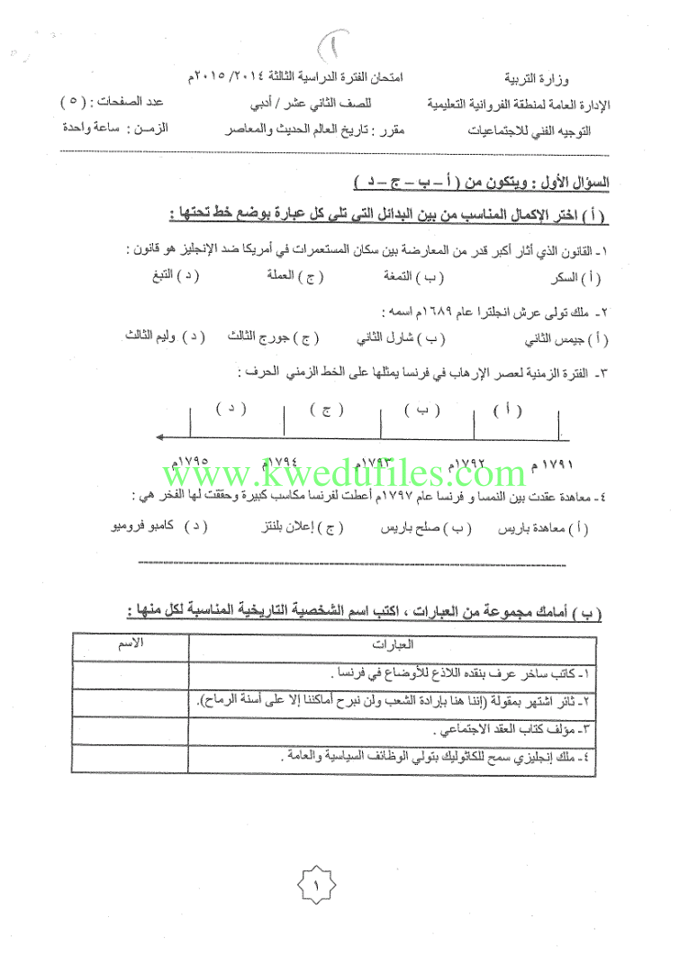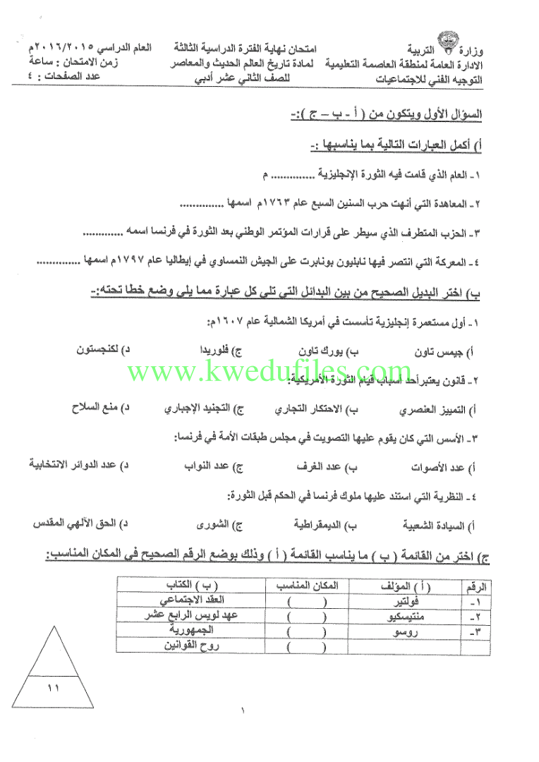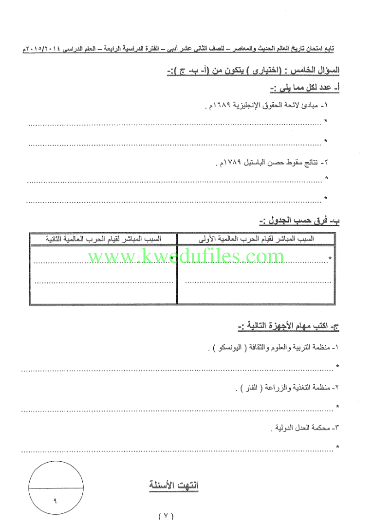 أنت هنا: موقع المناهجالمناهج الكويتية الصف الثاني عشر الأدبي تاريخ الفصل الثاني الامتحان النهائي
