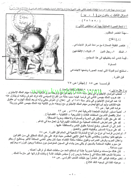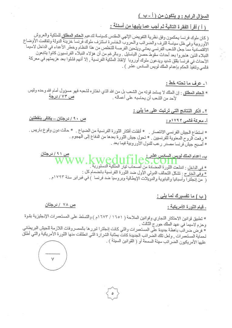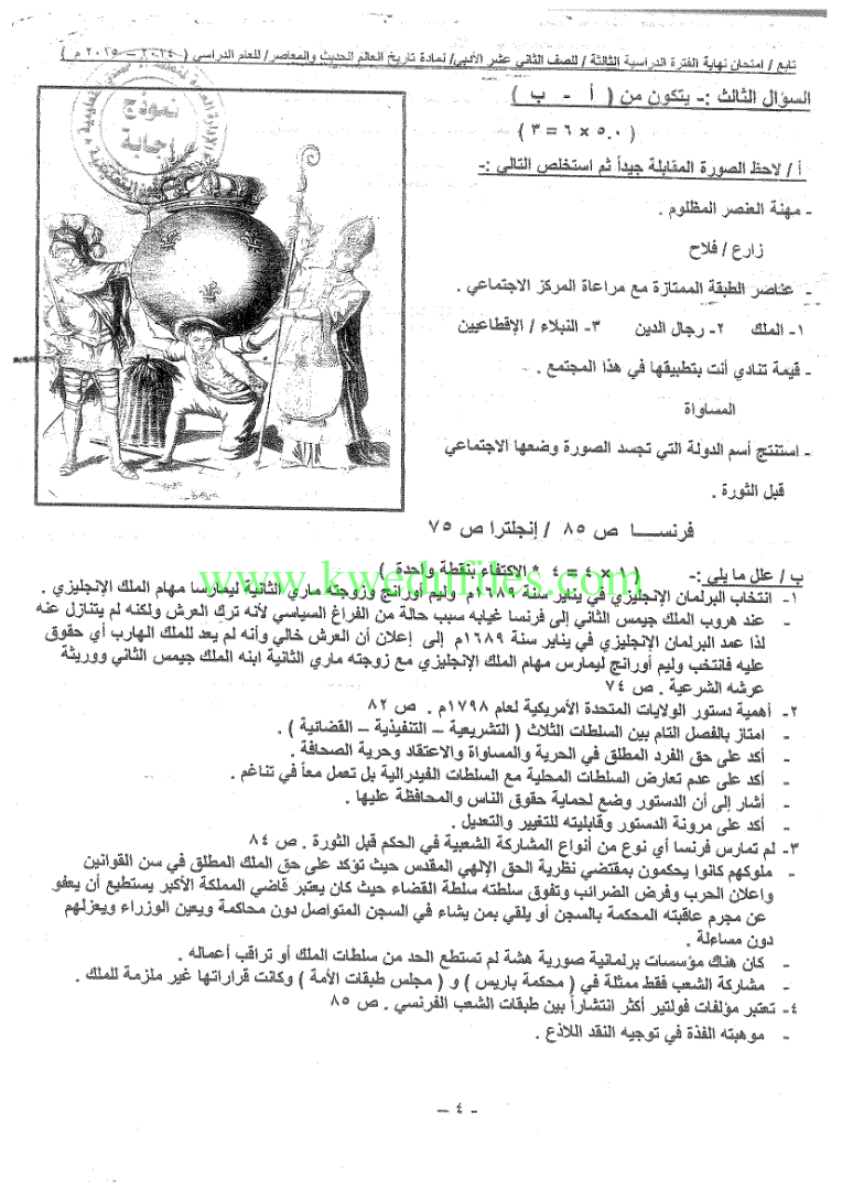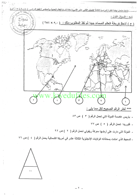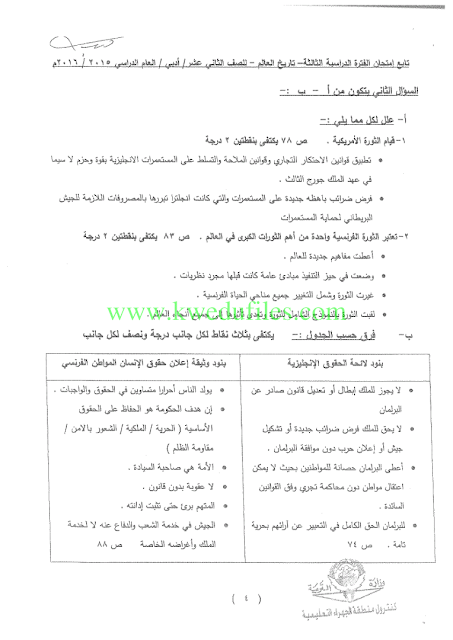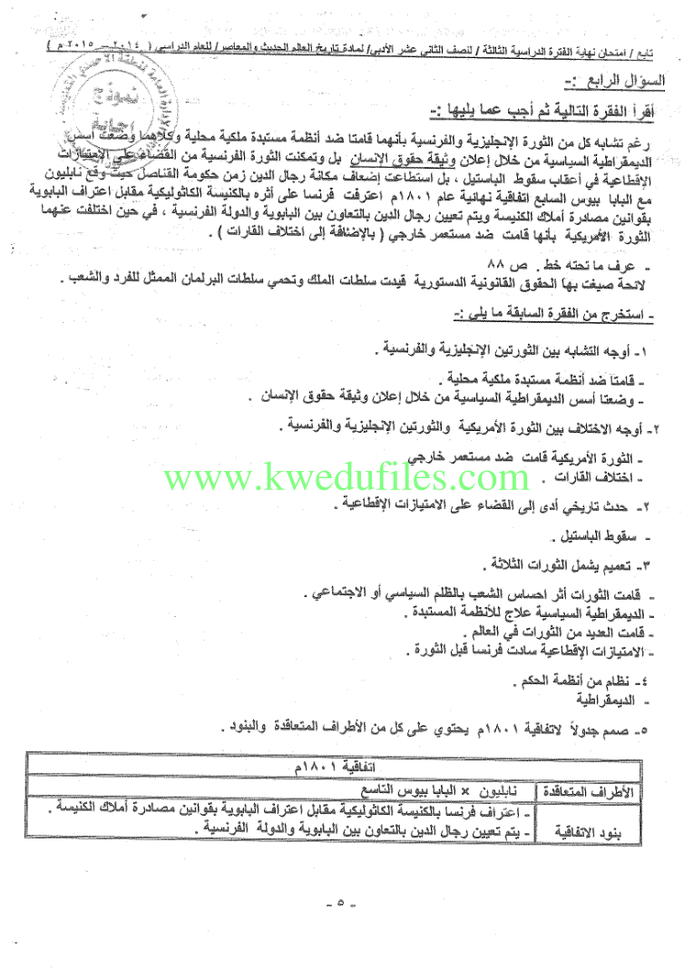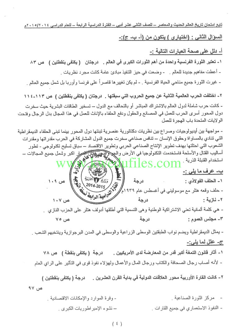 15. تاريخ, الفصل الثاني, 2024-2025, نموذج إجابة الاختبار النهائي الرسمي المعتمد من التوجيه الفني العام (منهج كامل)