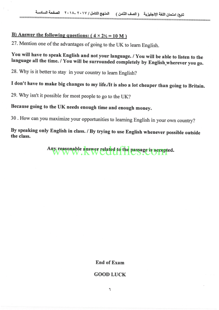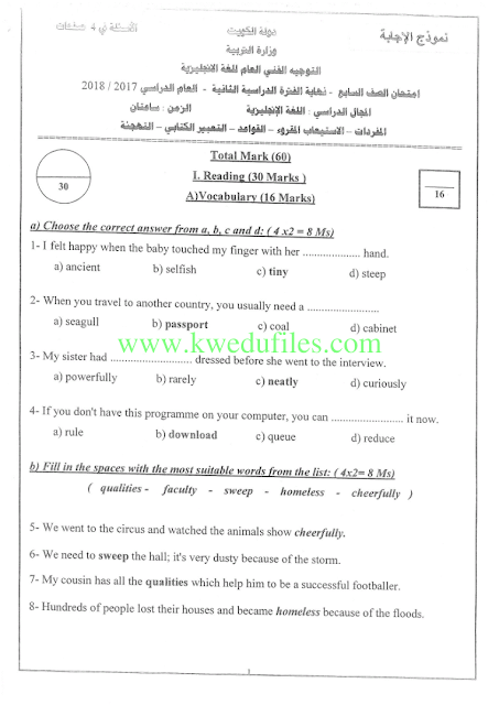 أنت هنا: موقع المناهج ⇦ المناهج الكويتية ⇦ مرحلة متوسطة ⇦ لغة انجليزية ⇦ الفصل الثاني ⇦ حلول |