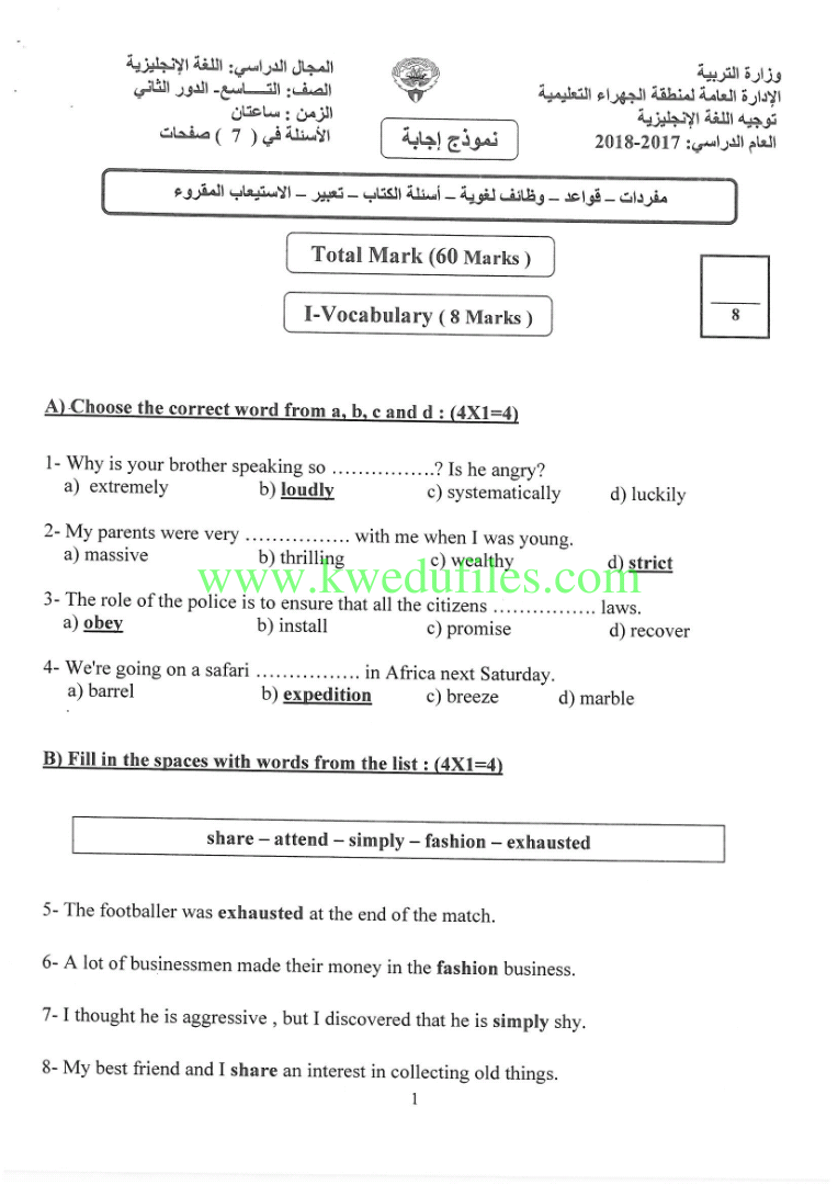 تنويه: المناهج الكويتية هو موقع مجاني وغير رسمي ولا يتطلب اشتراك لتحميل الملفات، لذلك يرجى عدم دفع أي مبلغ أو الاشتراك من أجل تحميل الملفات. | |