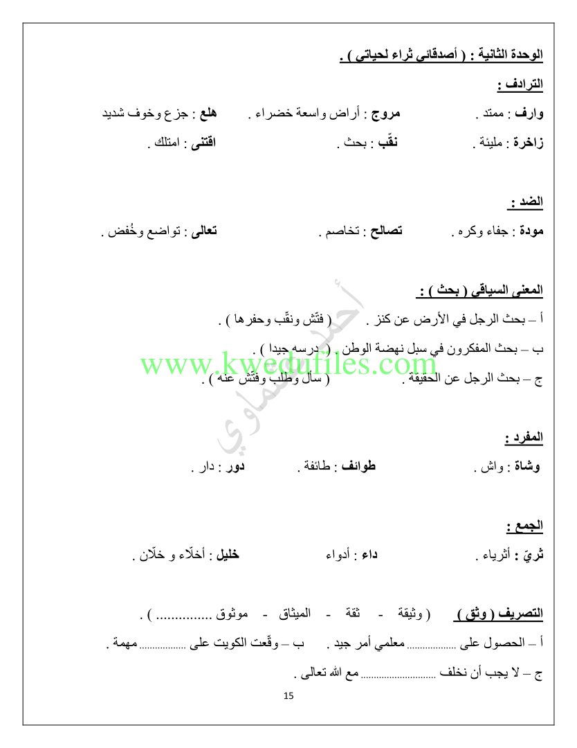 | أنت هنا: موقع المناهج ⇦ المناهج الكويتية ⇦ الصف السادس ⇦ لغة عربية ⇦ الفصل الأول ⇦ مذكرات وبنوك |