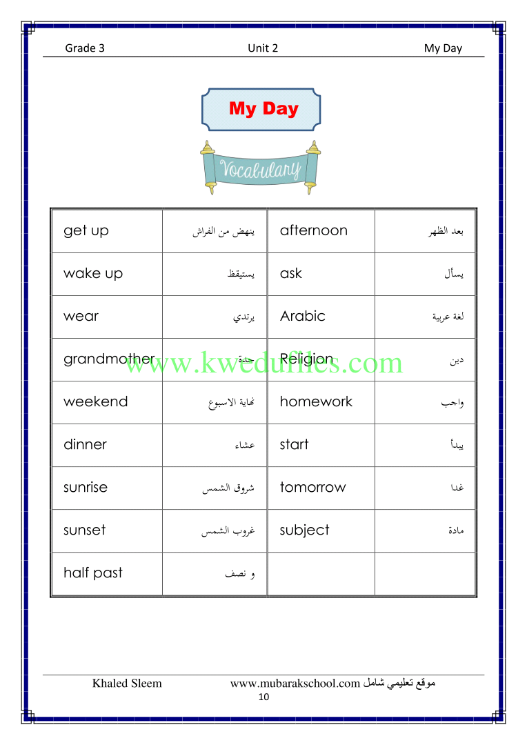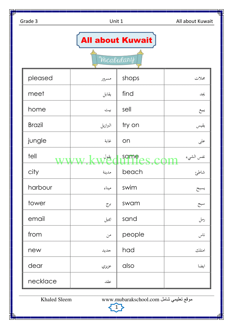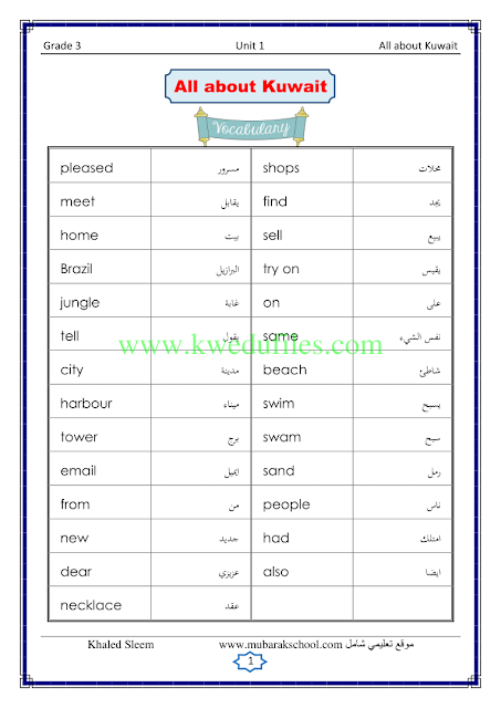أنت هنا: موقع المناهج ⇦ المناهج الكويتية ⇦ الصف الثالث ⇦ لغة انجليزية ⇦ الفصل الأول ⇦ مذكرات وبنوك |