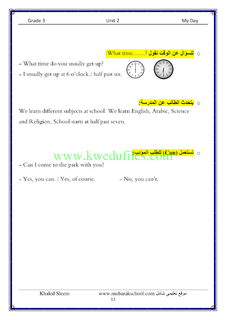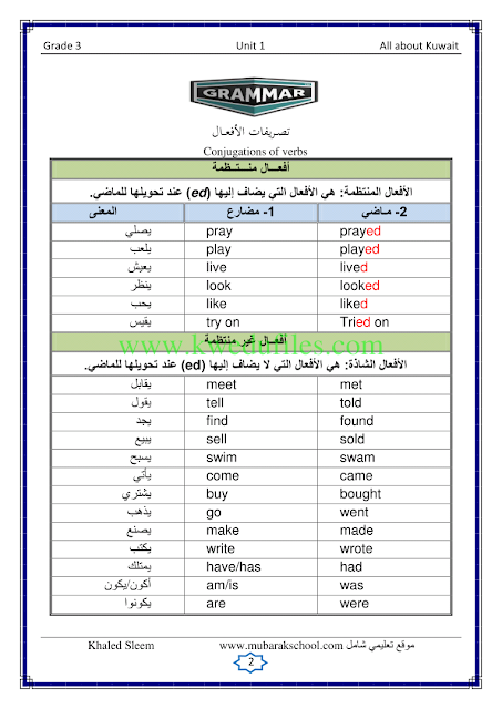 مذكرة ممتازة في مادة اللغة الانكليزية, الصف الثالث, لغة انجليزية, الفصل الأول, 2018-2019 - المناهج الكويتية