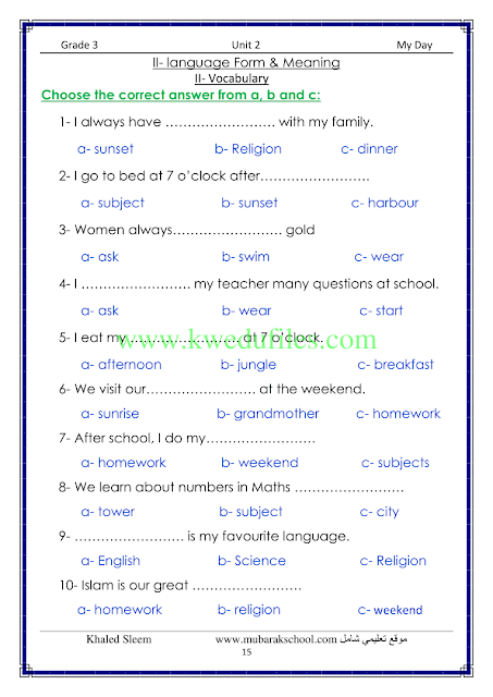أحدث ملفات الصف الثالث, لغة انجليزية, الفصل الأول
