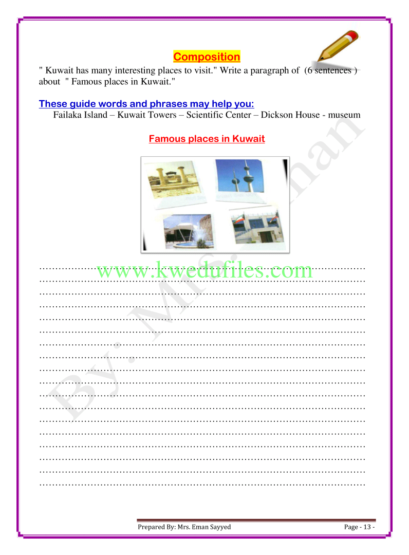 أنت هنا: موقع المناهج ⇦ المناهج الكويتية ⇦ الصف السادس ⇦ لغة انجليزية ⇦ الفصل الأول ⇦ مذكرات وبنوك |