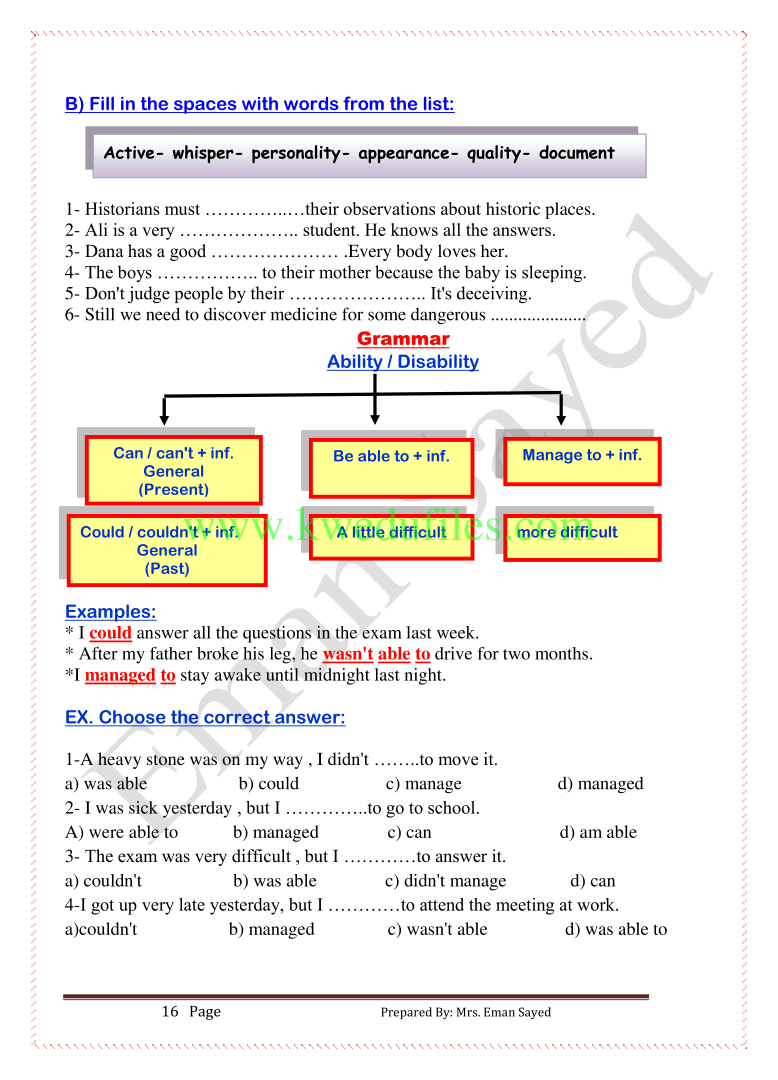 | مذكرة رائعة - إعداد: ايمان سعيد | ||