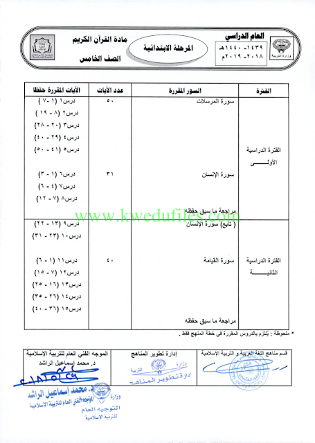 | الملاحظات المثبتة في المناهج الكويتية | |