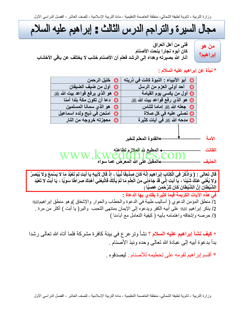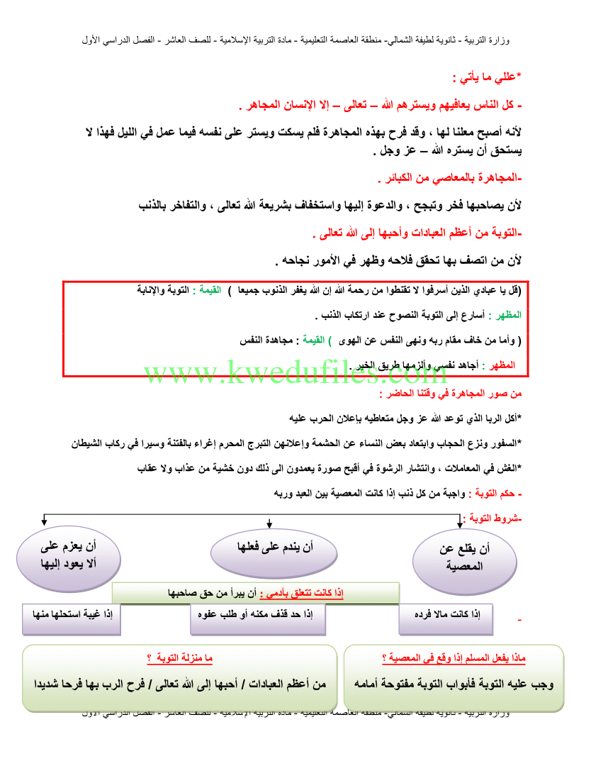 | أنت هنا: موقع المناهج ⇦ المناهج الكويتية ⇦ الصف العاشر ⇦ تربية اسلامية ⇦ الفصل الأول ⇦ ملفات متنوعة |