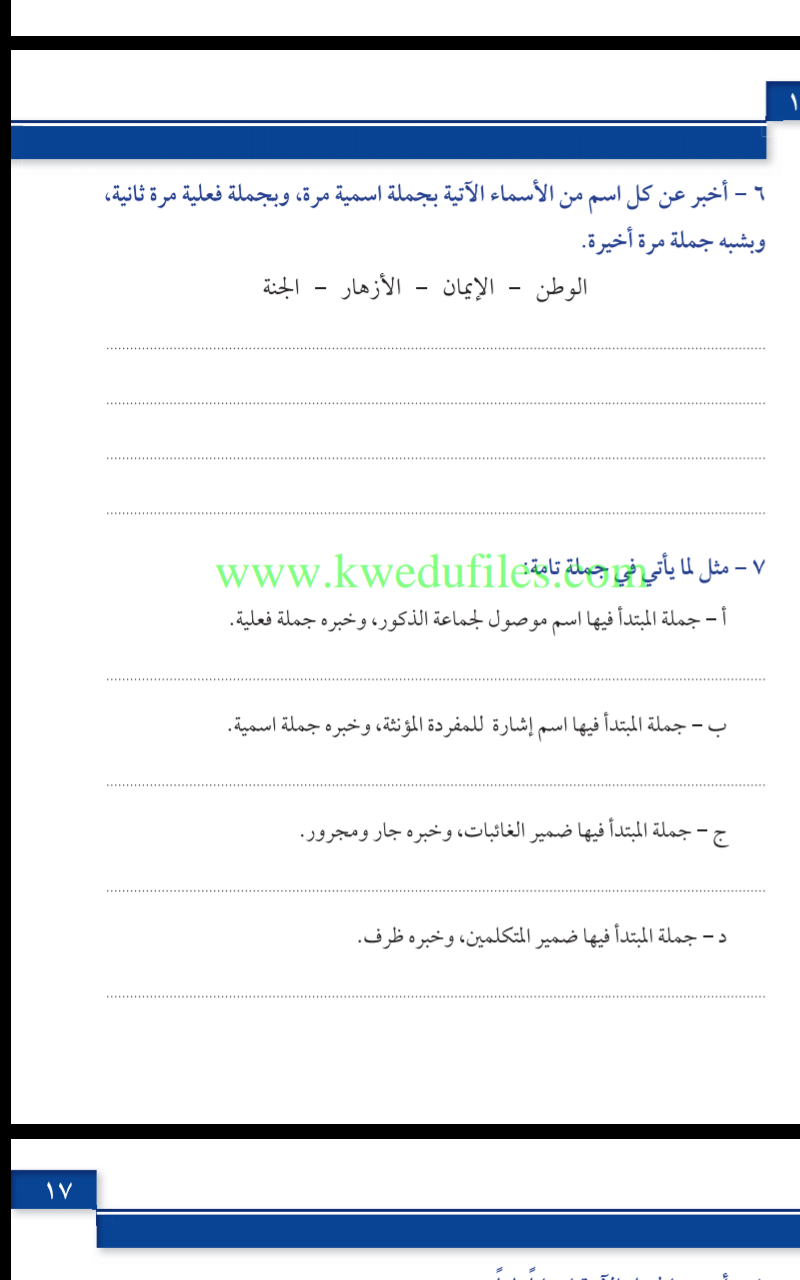 6. الصف السابع, تربية اسلامية, بنك أسئلة شامل