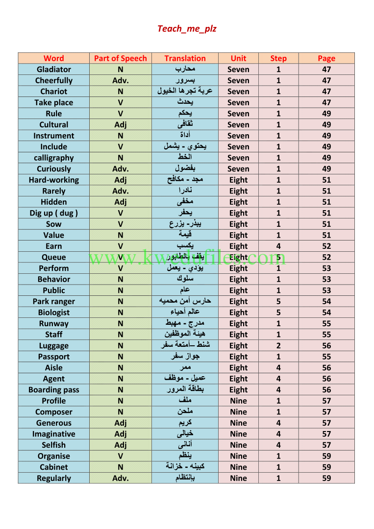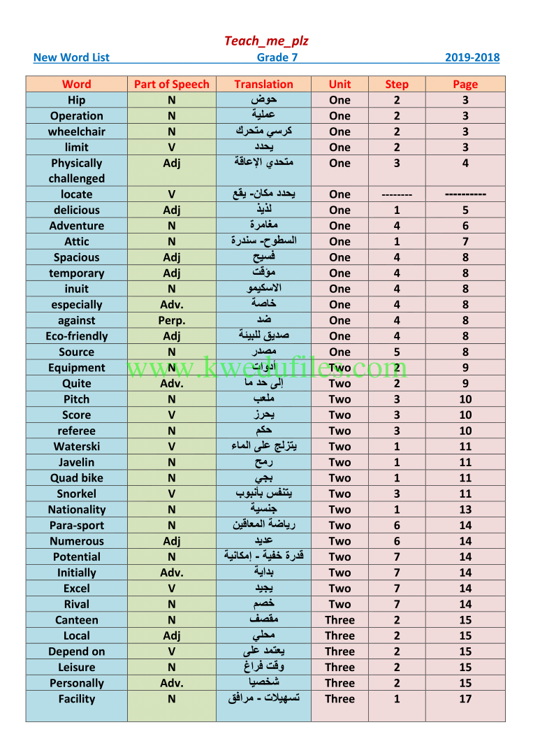| أنت هنا: موقع المناهج ⇦ المناهج الكويتية ⇦ الصف السابع ⇦ لغة انجليزية ⇦ الفصل الأول ⇦ ملفات متنوعة |