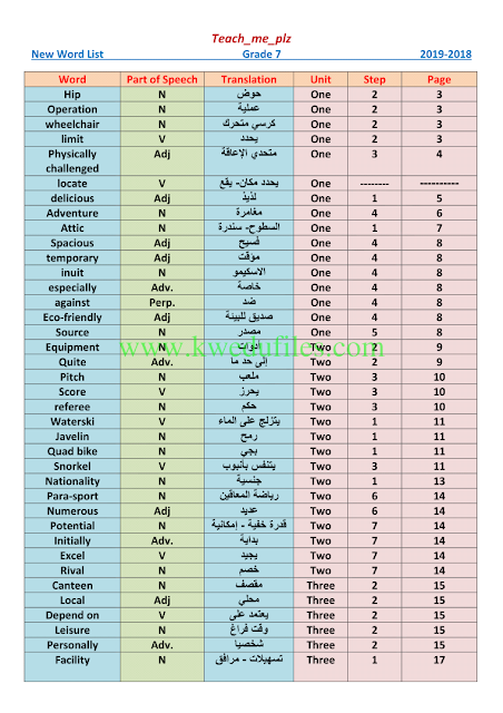 | أكثر خمس كلمات زيارة اليوم بحسب: لغة انجليزية - الصف السابع - الفصل الأول | |