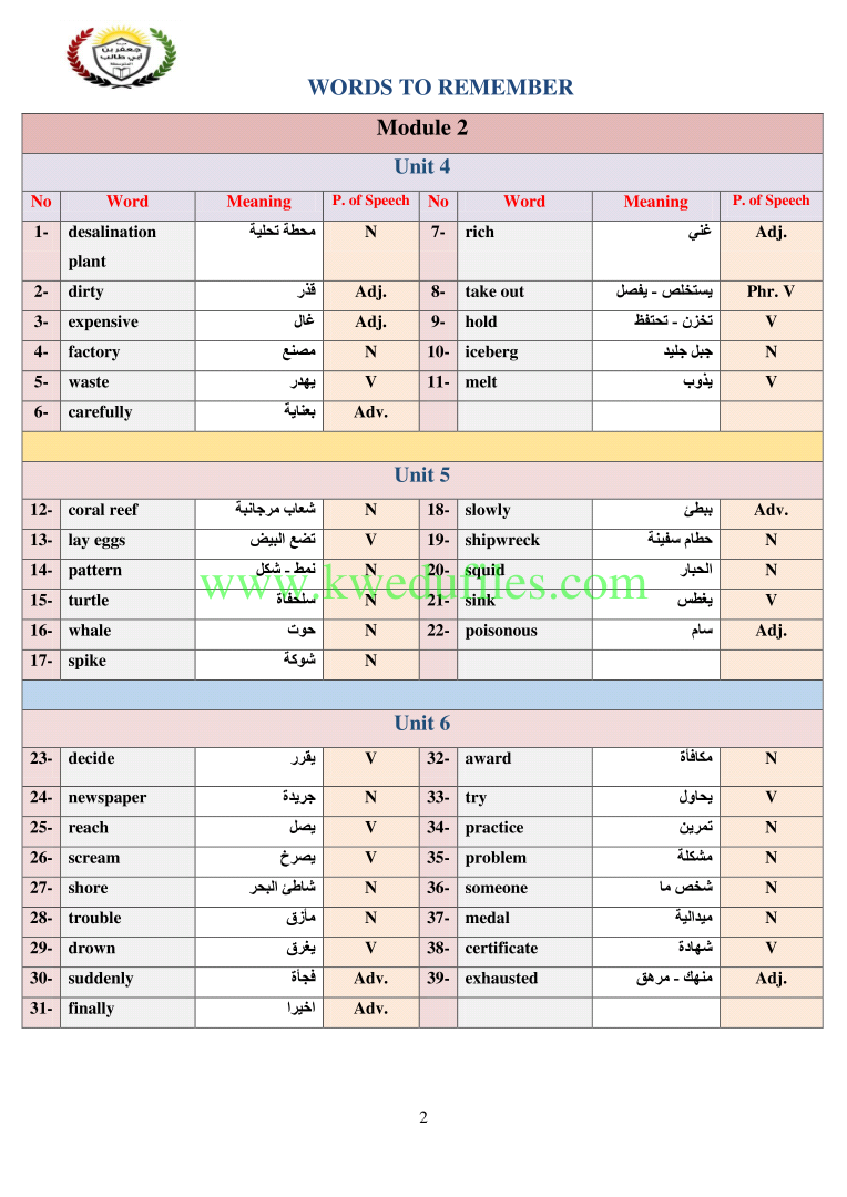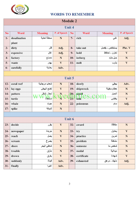 معاني كلمات الصف السادس في مادة اللغة الانكليزية للصف السادس للكورس الاول ع د اوراق هذا الملف 4اوراق