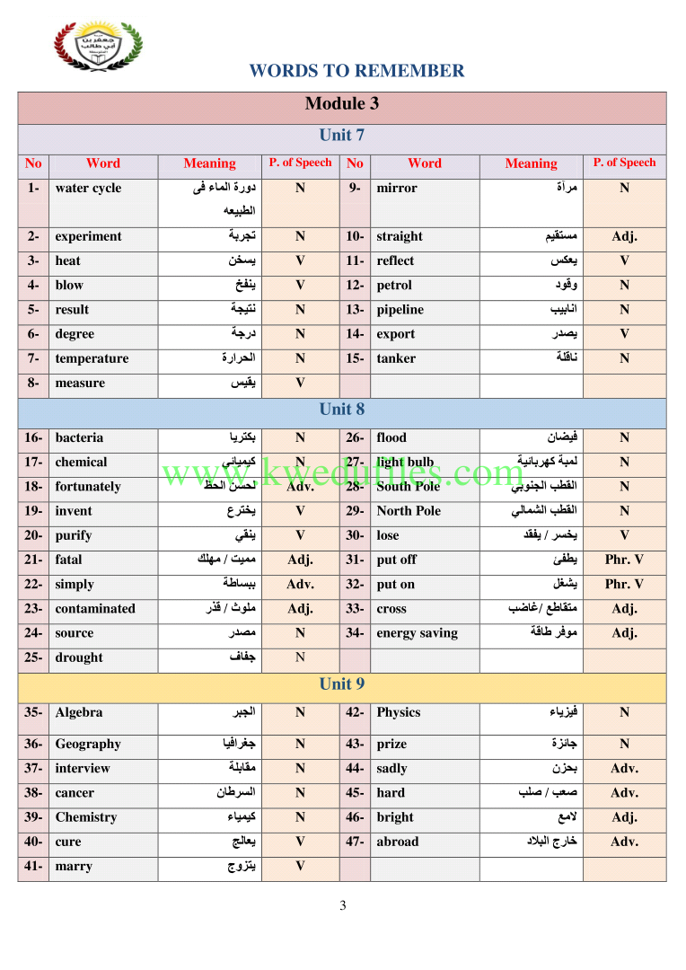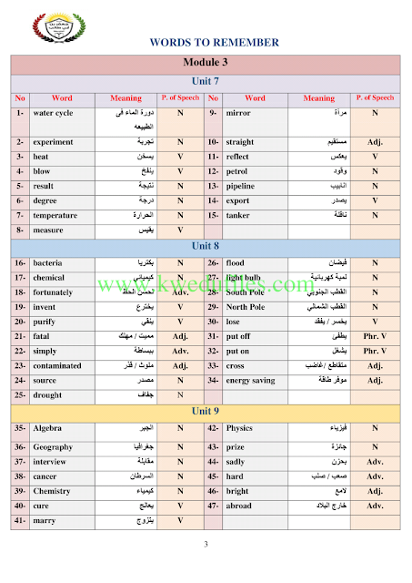 13. الصف التاسع, لغة عربية, ثروة لغوية شاملة من القرآن والشعر العربي للوحدتين الأولى والثانية