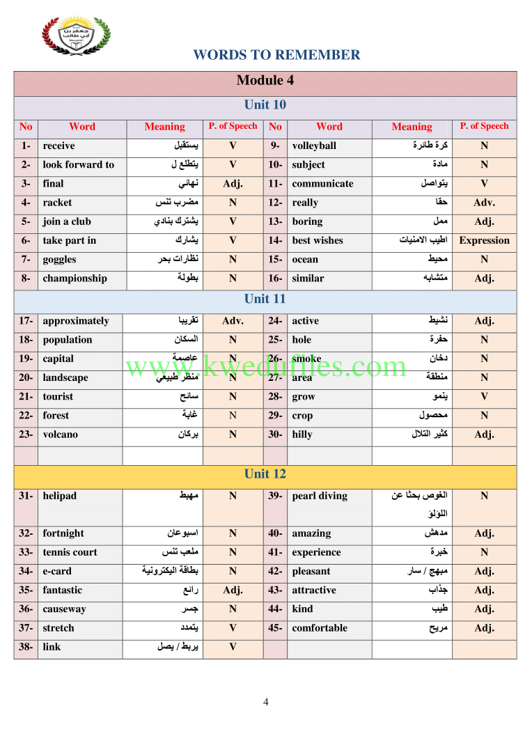 4. قواعد الوحدات اللازم تعلمها خلال الفصل