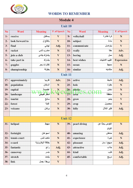 1. لغة انجليزية, الفصل الأول, 2025-2026, مفردات الوحدة الأولى مع الترجمة