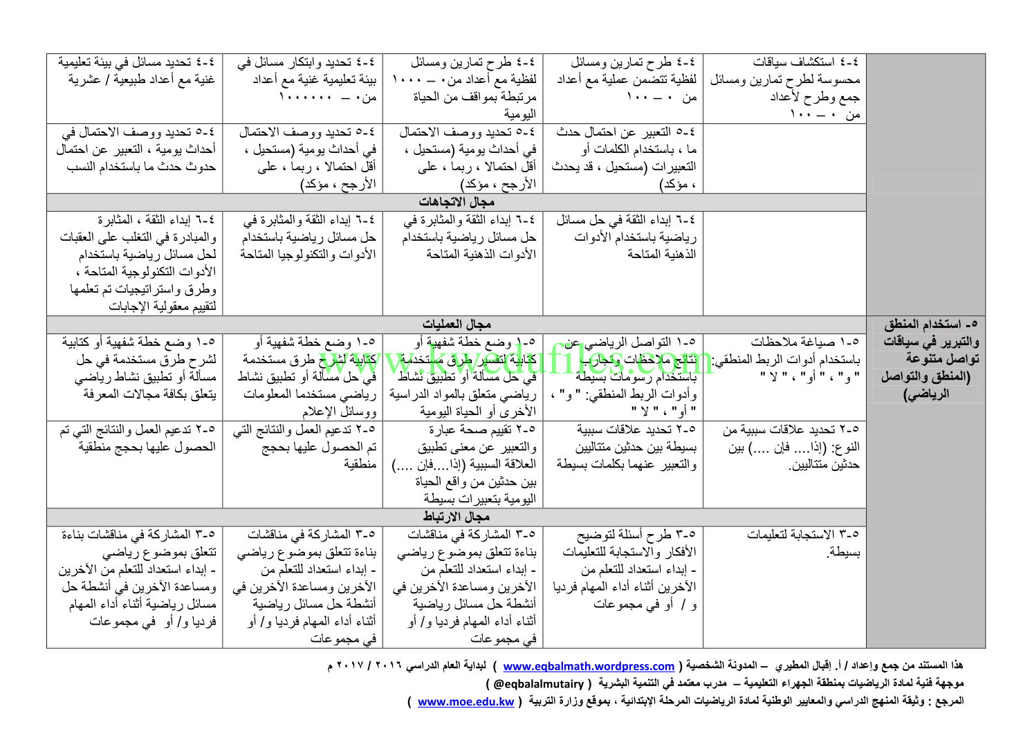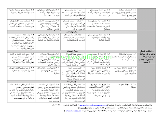 4. الكفايات العامة والخاصة لمادة الرياضيات للمرحلة الابتدائية لعام 2018_