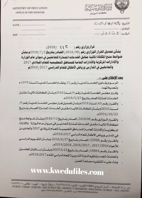 صدور قرار وزاري بتعديل تاريخ استحقاق مكافأة الاعمال الممتازة, أخبار, غير ذلك, الفصل الأول, 2018-2019 | ||