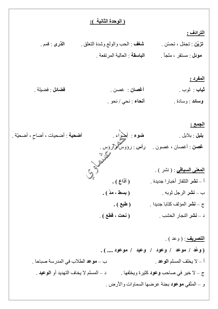 | المادة: لغة عربية | ||