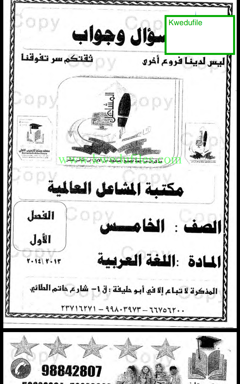 تم إيجاد الملف: مذكرة سؤال وجواب في مادة اللغة العربية للصف الخامس