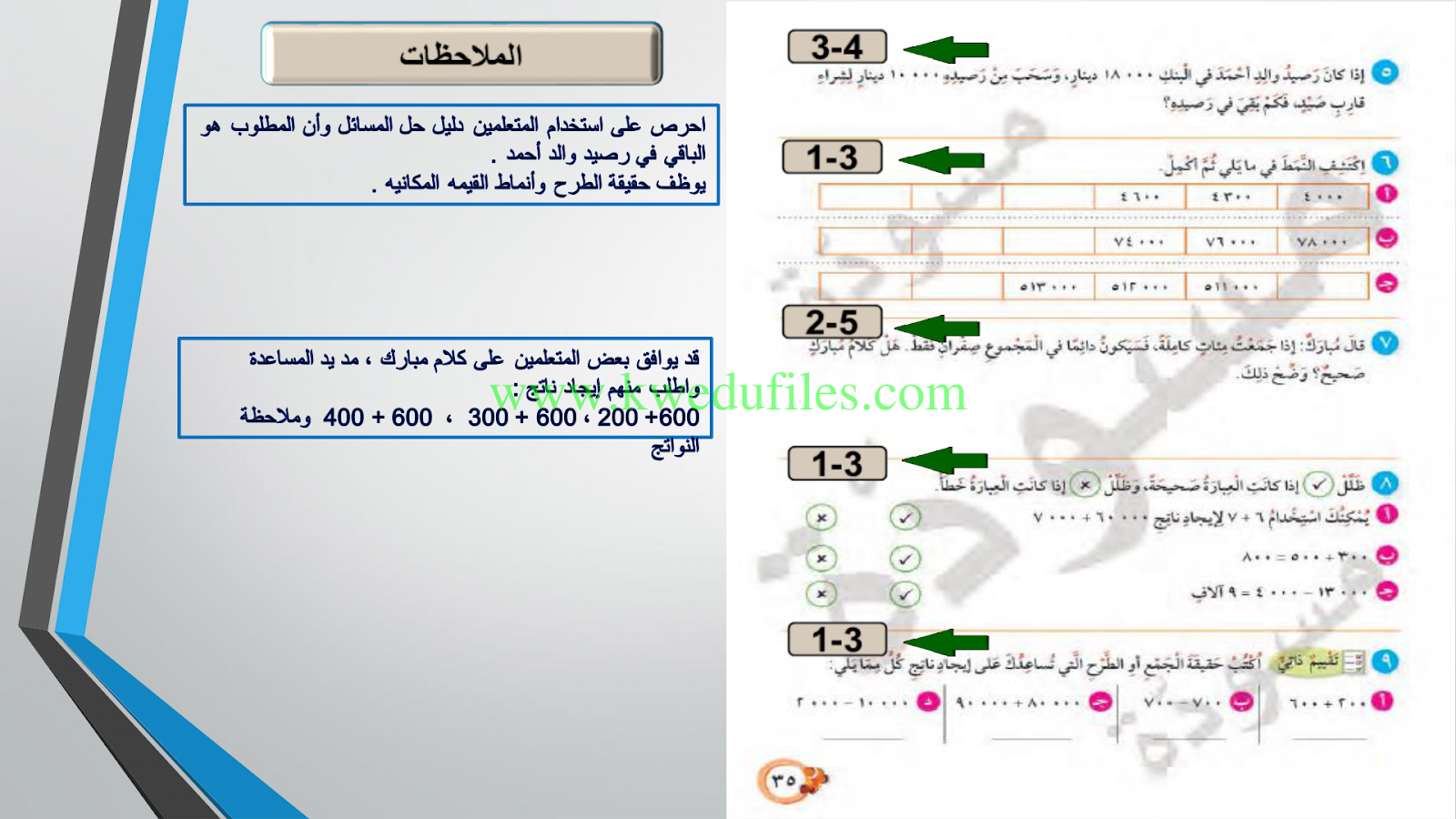 | الملاحظات المثبتة في المناهج الكويتية | |