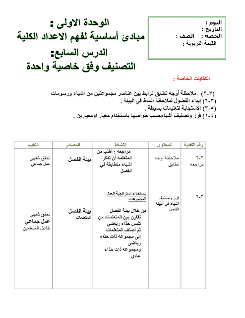 تم إيجاد الملف: التصنيف وفق خاصية واحدة في مادة الرياضيات