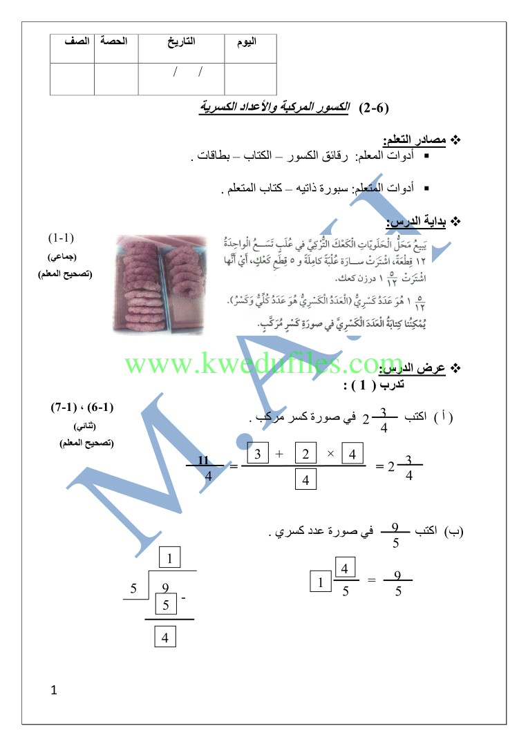 6. مراجعة اختبار تقويمي ثاني على الكسور والأعداد