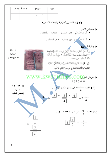 بند 2_6منهج كفايات في مادة الرياضيات للصف السادس للكورس الاول عدد اوراق هذا الملف ورقتين