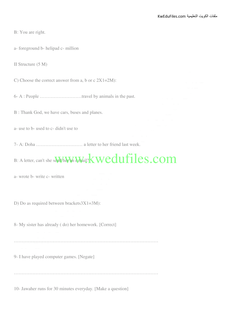 تم إيجاد الملف: مراجعة مهمة في مادة اللغة الانكليزية