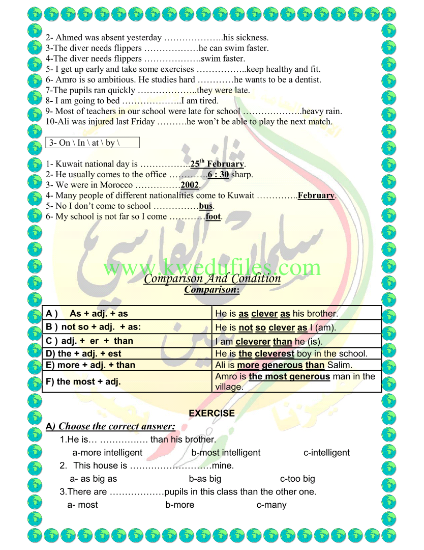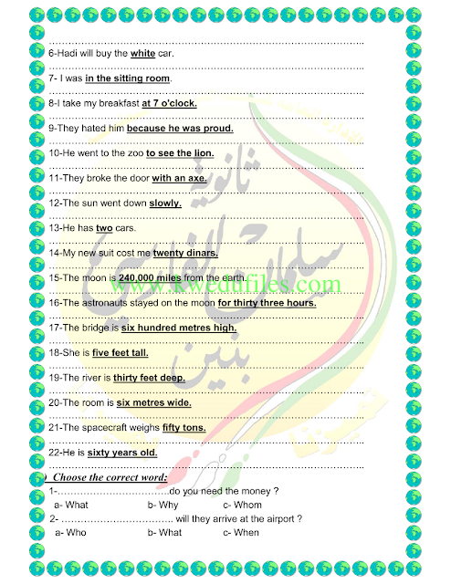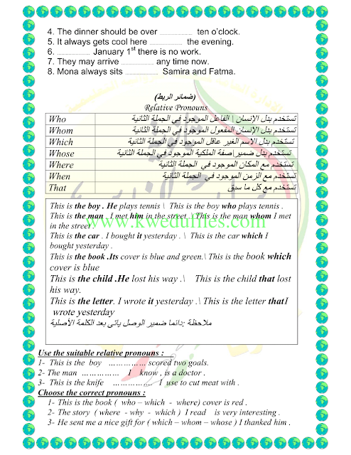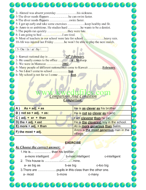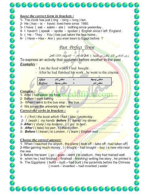 | مذكرة ممتازة في مادة اللغة الانكليزية - إعداد: ثانوية سلمان الفارسي | ||