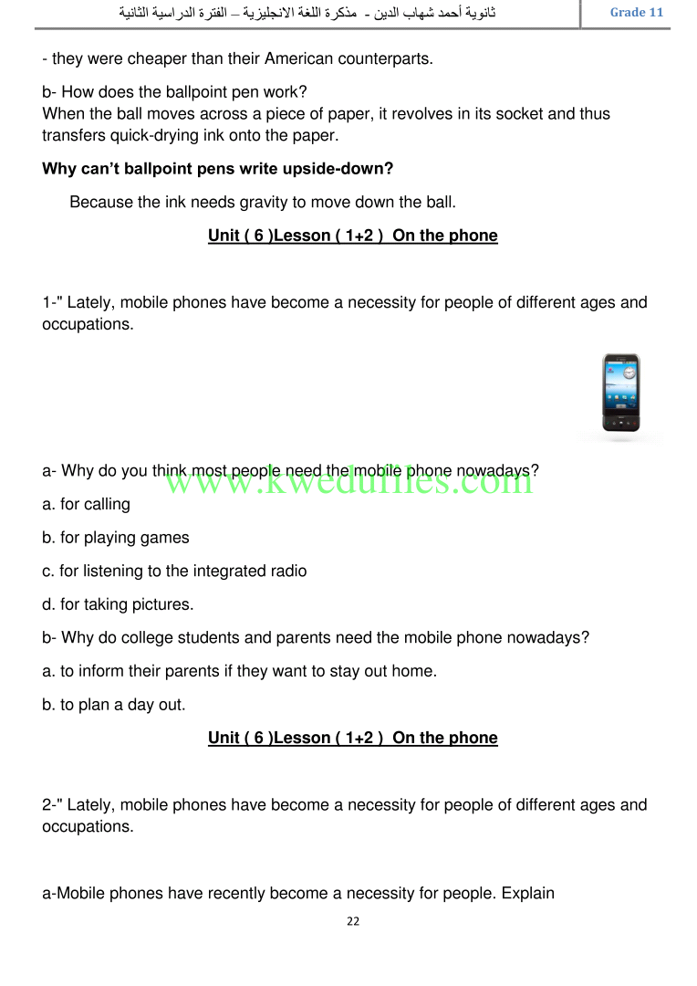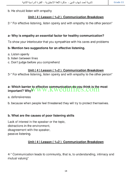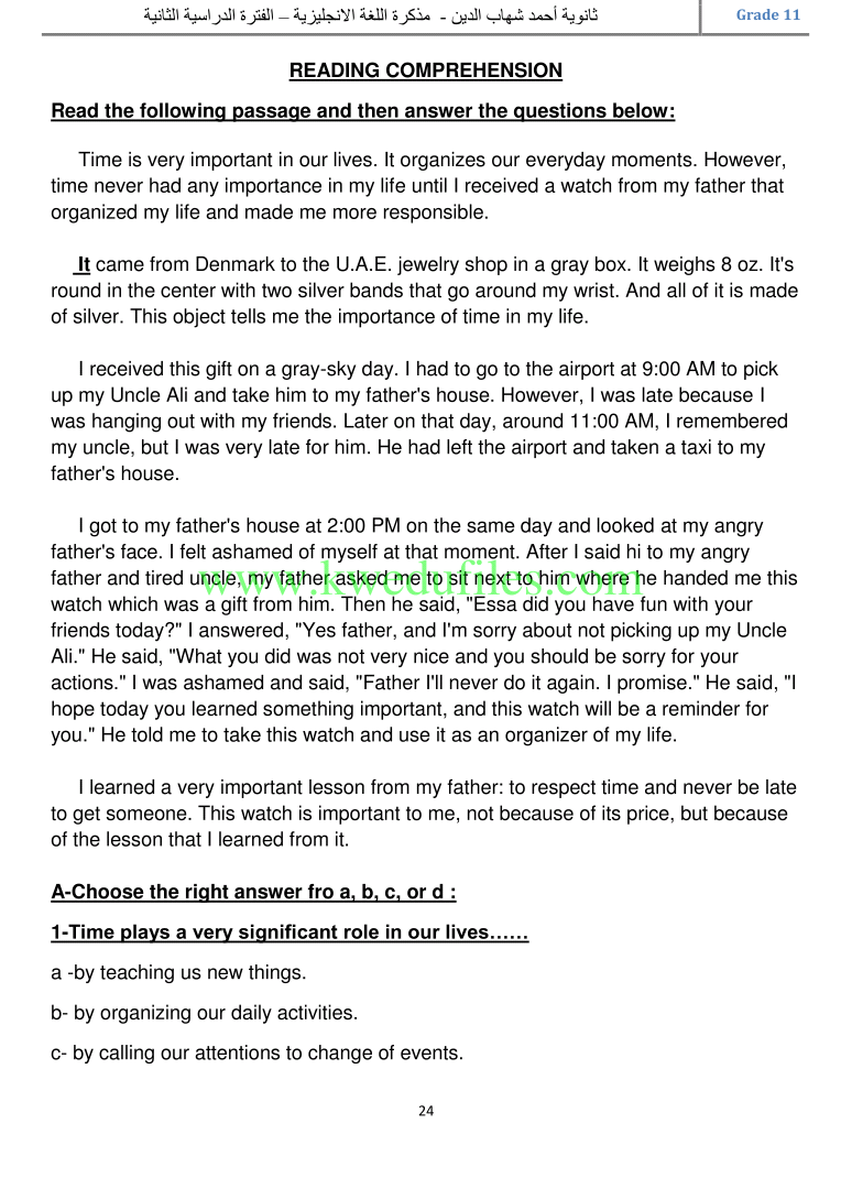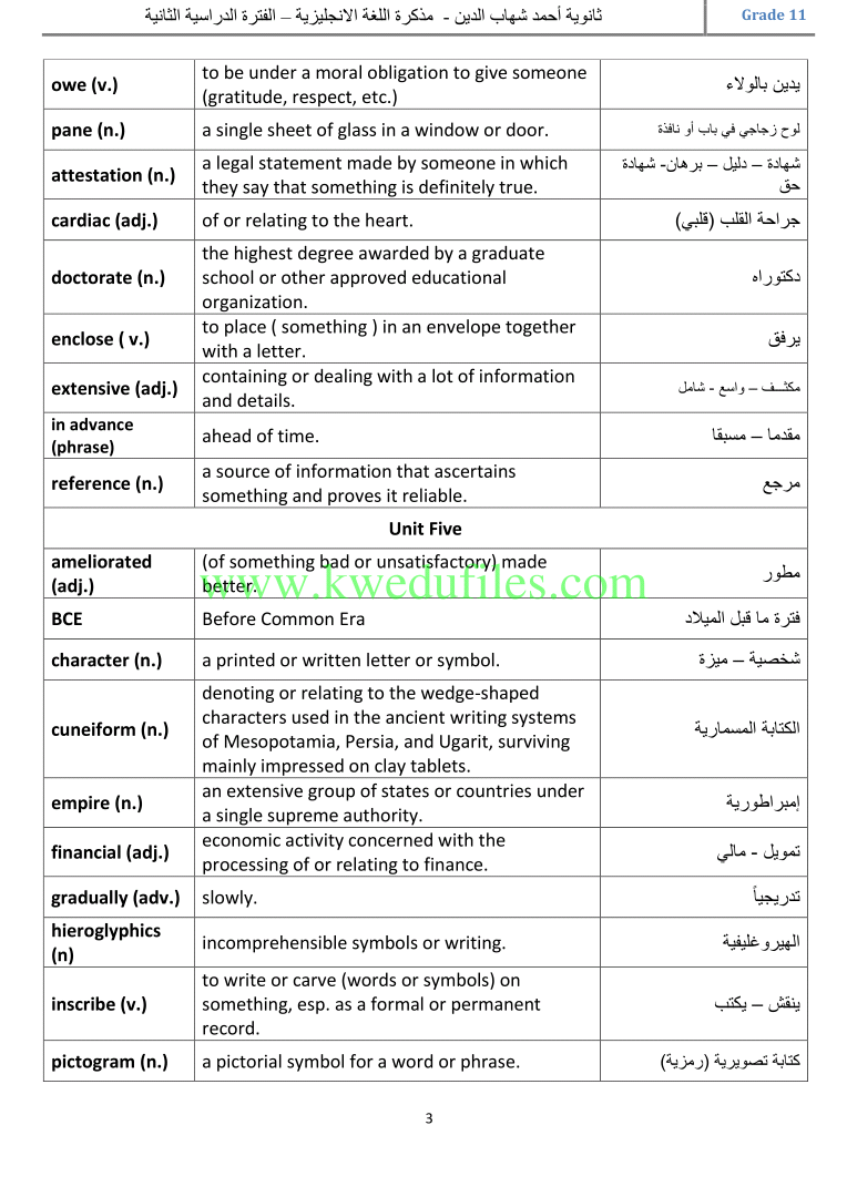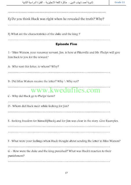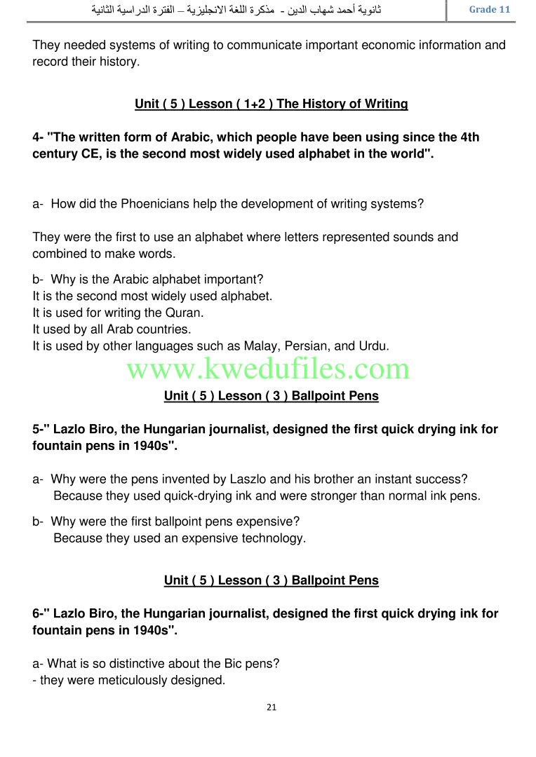 معلومات الملف: مذكرة رائعة في مادة اللغة الانكليزية للصف الحادي عشر للكورس الاول عدد اوراق هذا الملف 26ورقة | ||