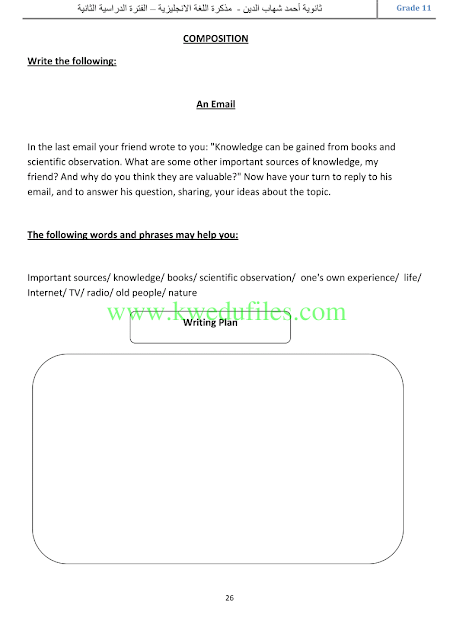 مذكرة ممتازة في مادة اللغة الانكليزية | ||