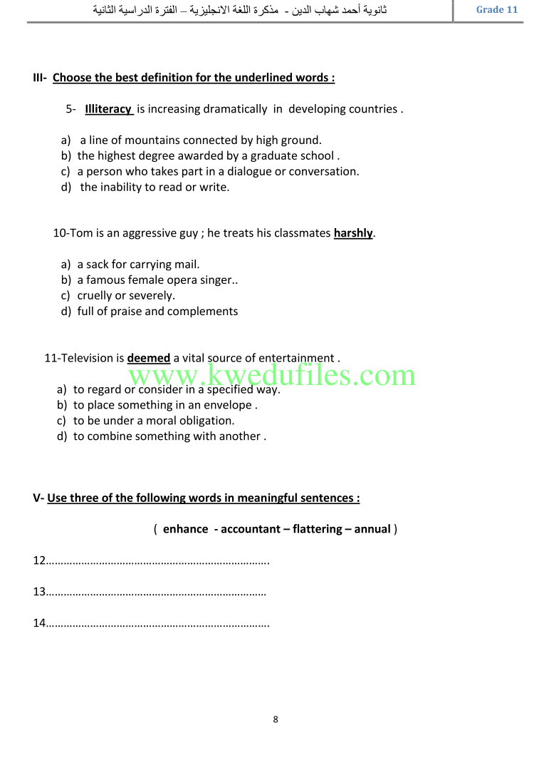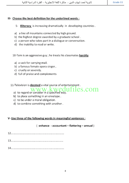 السابق: نموذج اجابة اختبار في مادة اللغة الانكليزية | الملف الحالي: 1532 | التالي: نموذج اختبار قصير أول من العشماوي |