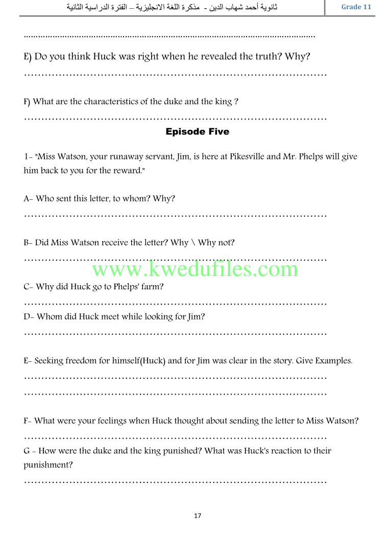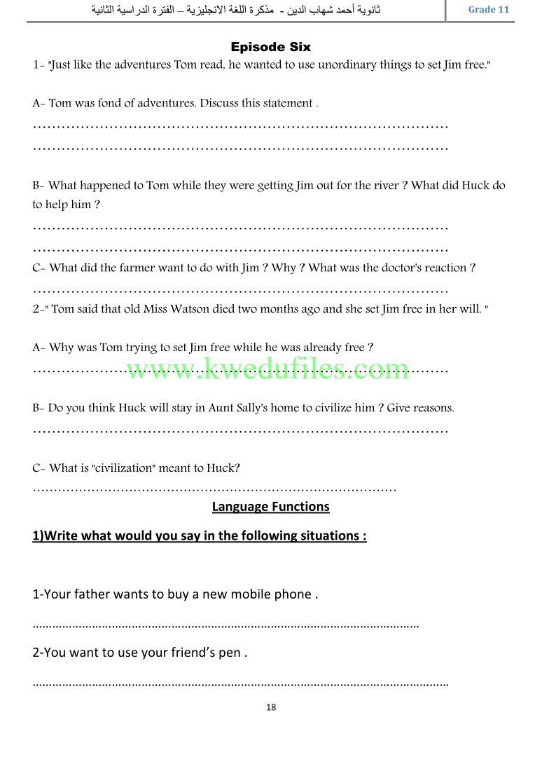 يتم الآن تحضير الملف (مذكرة ممتازة في مادة اللغة الانكليزية) من أجل التحميل