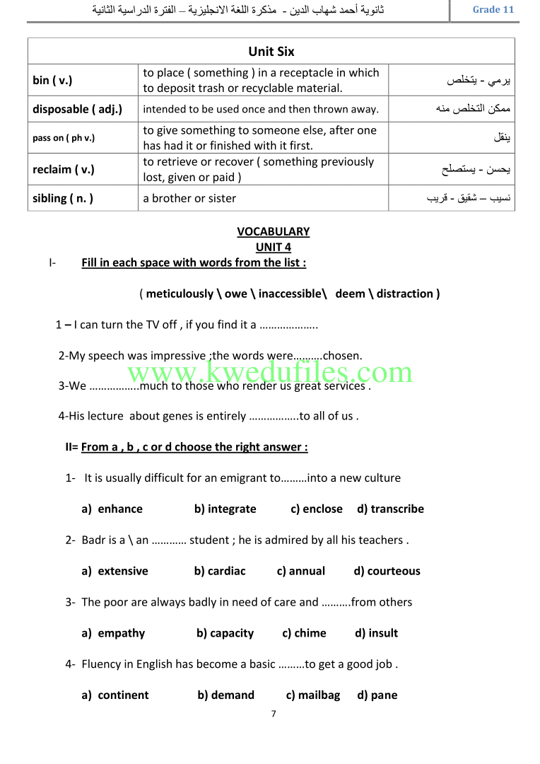 | مذكرة ممتازة في مادة اللغة الانكليزية | ||