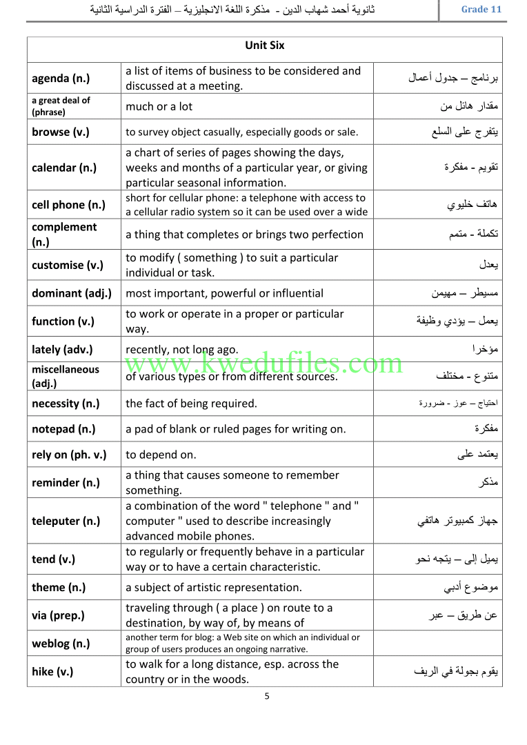 أكثر خمس كلمات زيارة اليوم بحسب: لغة انجليزية - الصف الحادي عشر - الفصل الأول | |