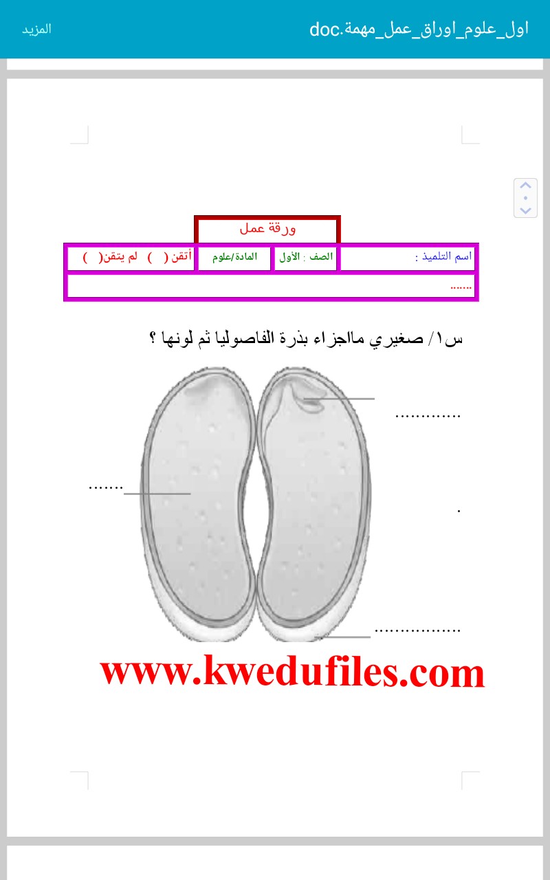 تم إيجاد الملف: اوراق عمل في مادة العلوم