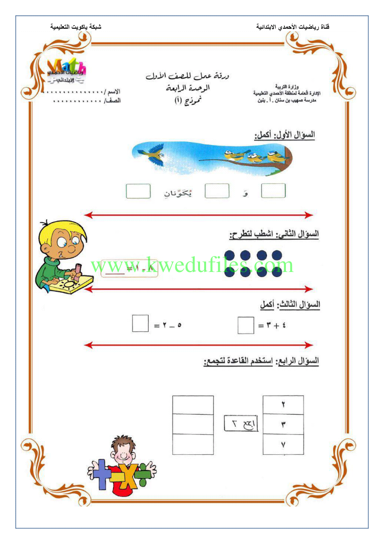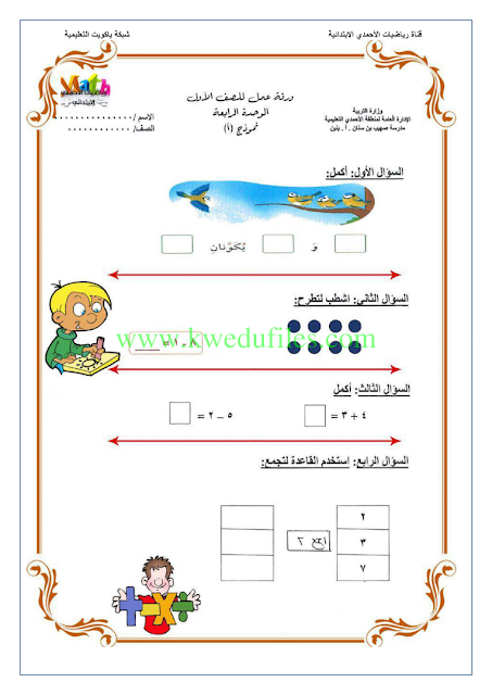أنت هنا: موقع المناهجالمناهج الكويتية الصف الأول رياضيات الفصل الأول أوراق عمل