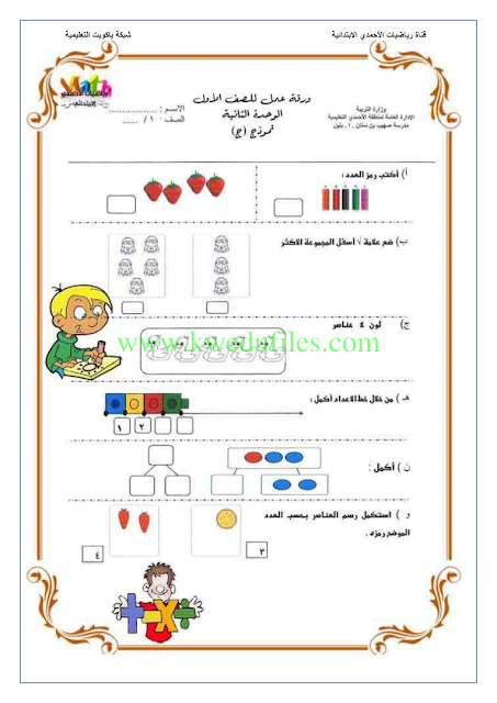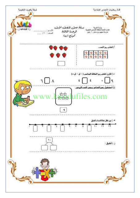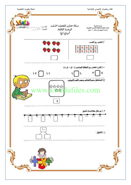 اوراق عمل مهمة في مادة الرياضيات للصف الاول للكورس الاول عدد اوراق هذا الملف 16ورقة