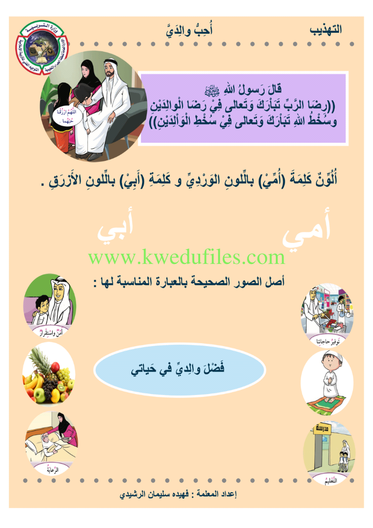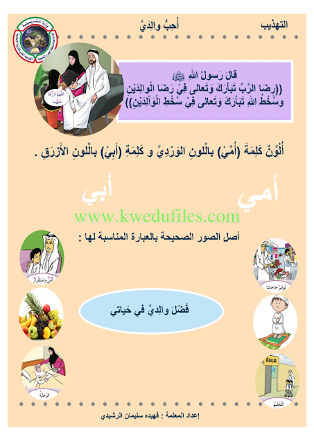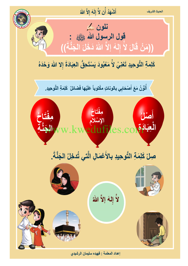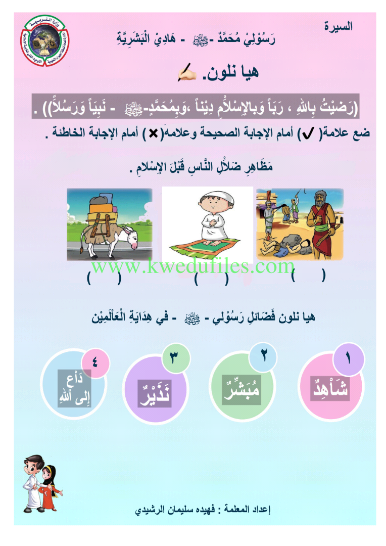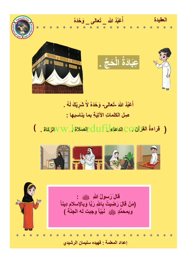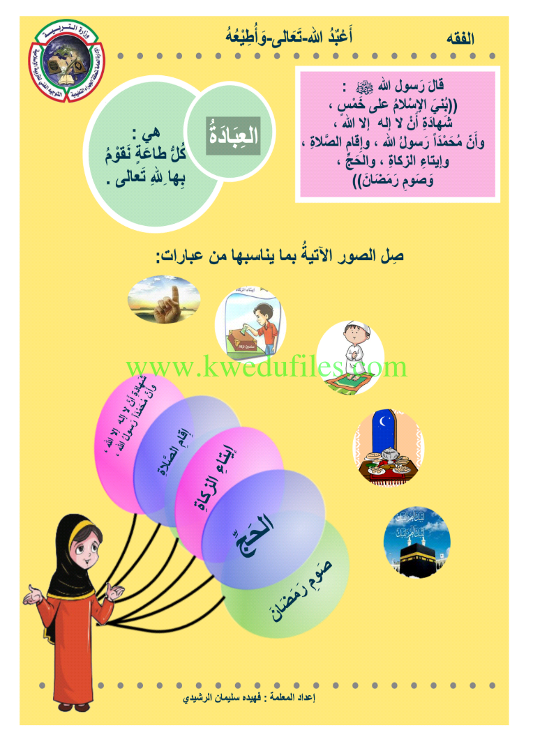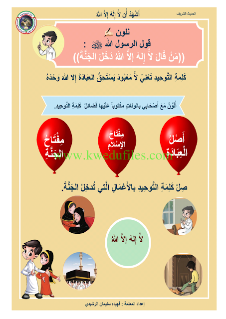 اوراق عمل في مادة التربية الاسلامية للصف الأول للكورس الاول من اعداد المعلمة فهيدة الرشيدي عدد اوراق هذا الملف 14ورقة