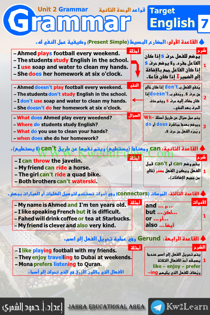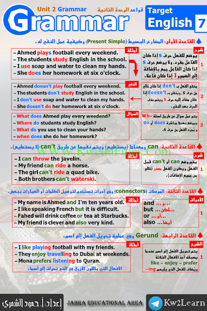 قواعد الوحدة الثانية في مادة اللغة الانكليزية