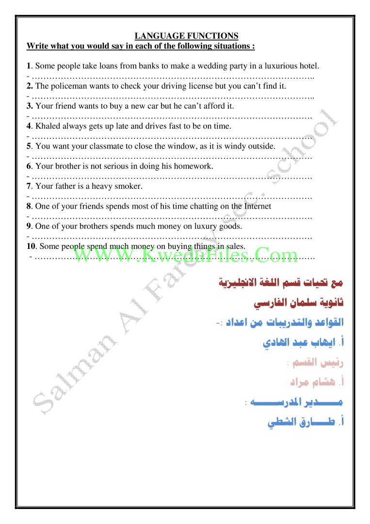 7. المراجعة النهائية لمواضيع التعبير النهائي