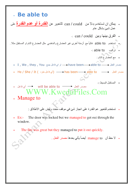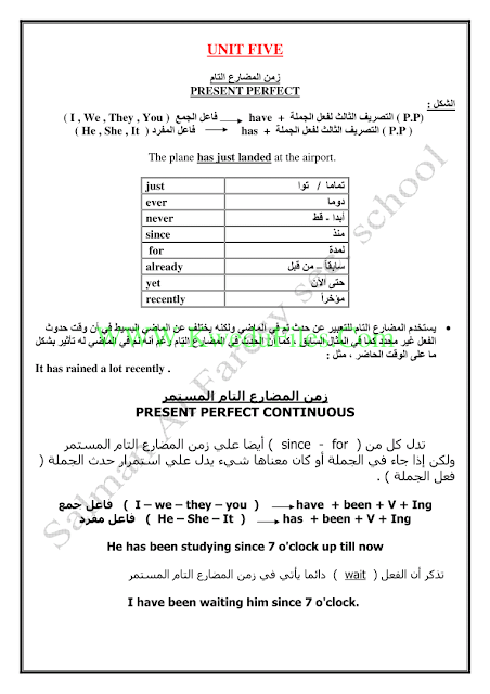 مذكرة المنهج والقواعد والسيت بوك في مادة اللغة الانكليزية