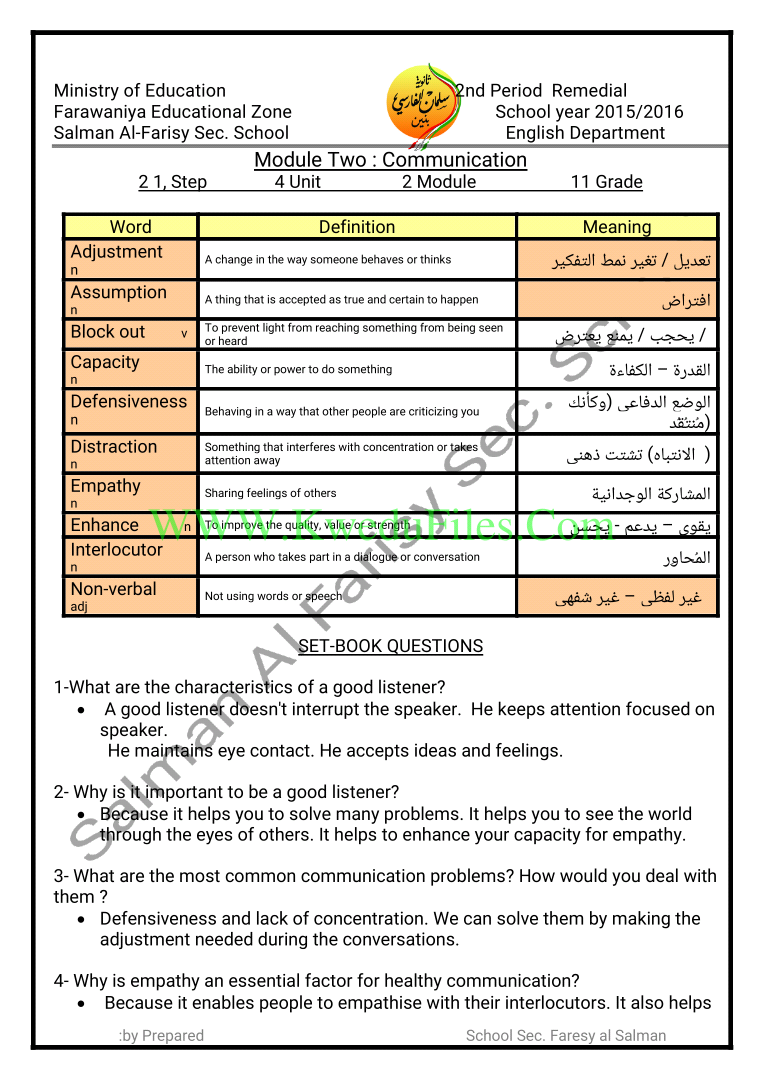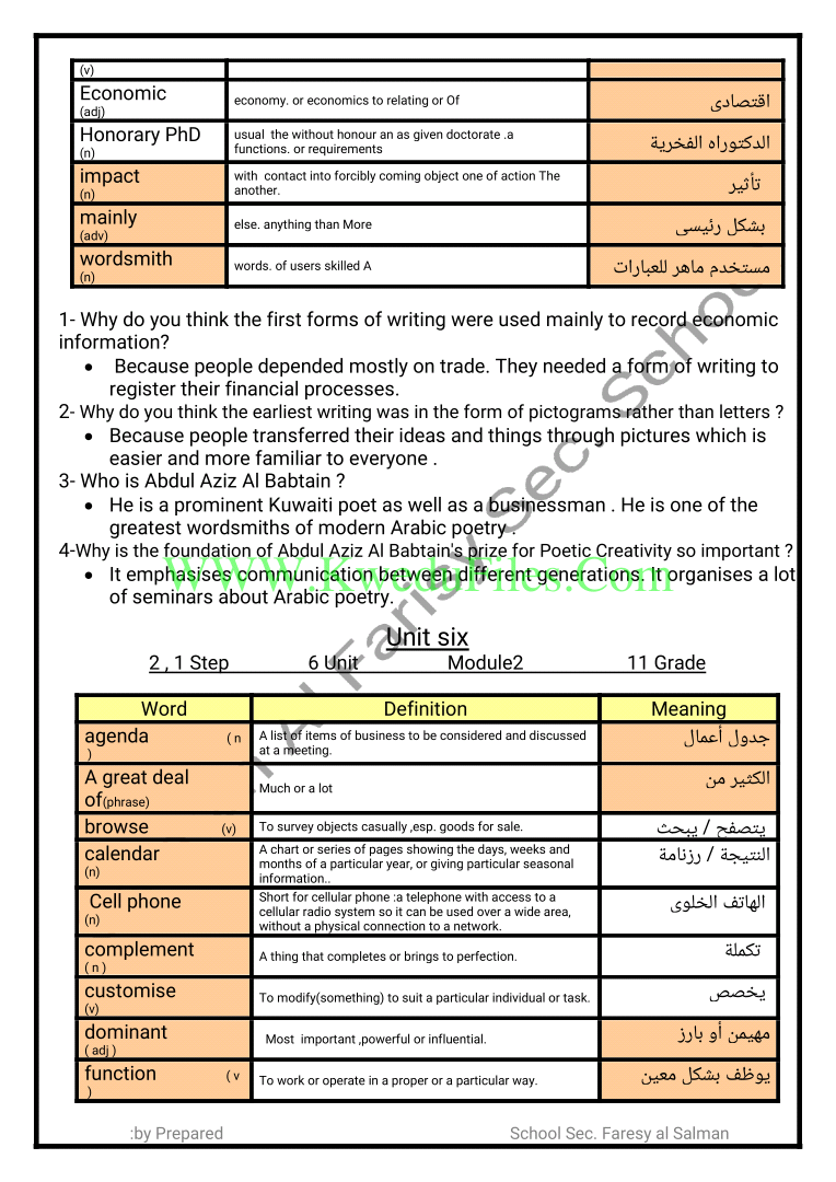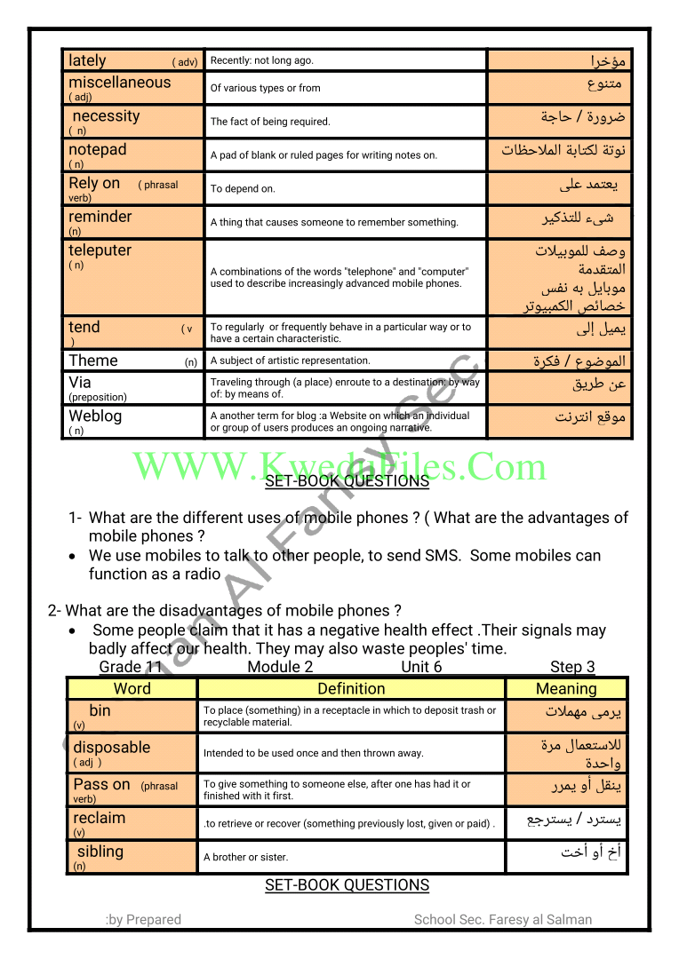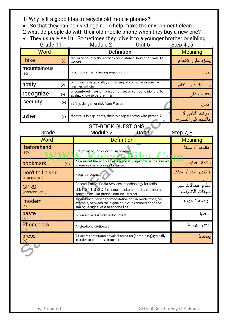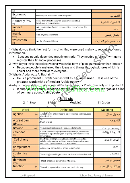 الوحدات4, 5,6في مادة اللغة الانكليزية - إعداد: ثانوية سلمان الفارسي